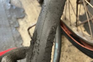 こんにちは元住吉店です。 空気を入れないで乗り続けるとこうなります。 中のチューブが削れていますね💦 こうなってしまうとゴムが傷つき薄くなりパンクします、パンクの原因の7割がこの摩耗パンクなの …