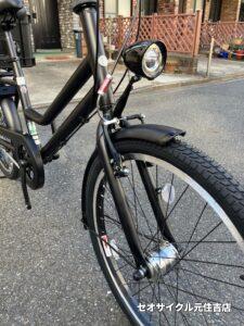 LED砲弾型オートライトはおしゃれで存在感抜群! 軽いタッチでしっかり効くVブレーキもこだわりのひとつ😼